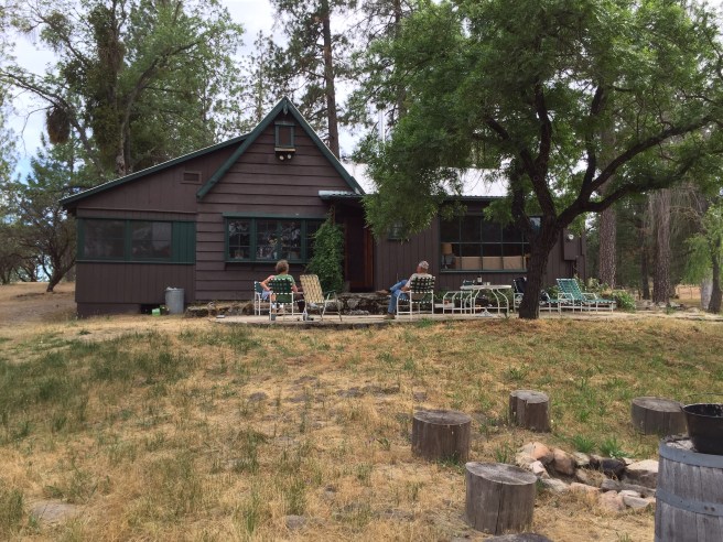 The reason for the trip down to Yosemite in the first place was to go to a quilt retreat Caroline’s friend Trina was hosting at her husband’s family cabin near Mariposa, about 40 minutes from the park. The setting was lovely, and the cabin, originally started in the 1940s, comfortable with all the comforts of home. So the plan was for four days of sewing and eating!