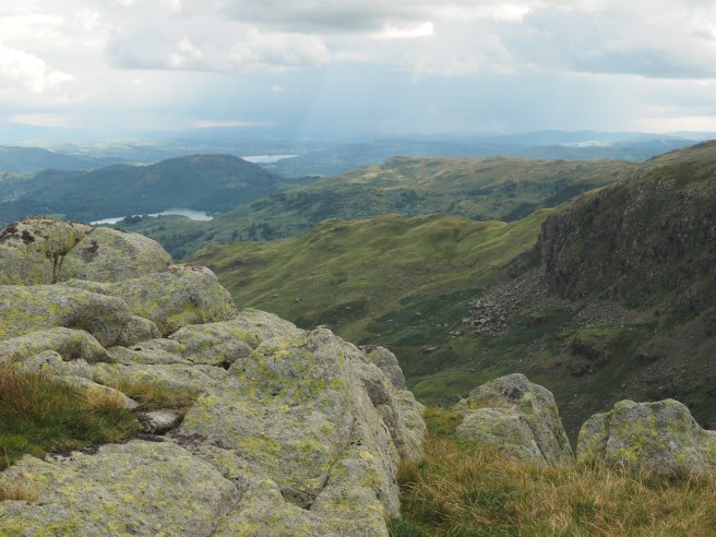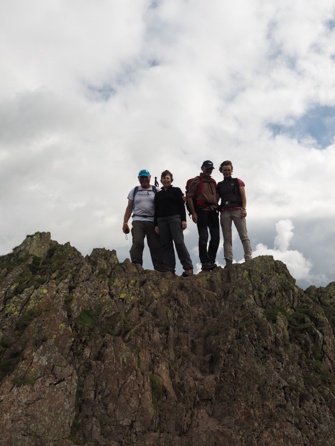 Then a boggy walk across Greenup Edge to the highest point of the day (boggy bits on top of high hills does my head in!). Had lunch looking along a ridge line to Helm Crag, which was our afternoon walk. Was bizarrely the first place for a couple of days we had mobile reception. Walk along the ridge to Calf Crag, the Knott and finally Helm Crag was great – but in a few places it was very steep – eyes definitely on the path!