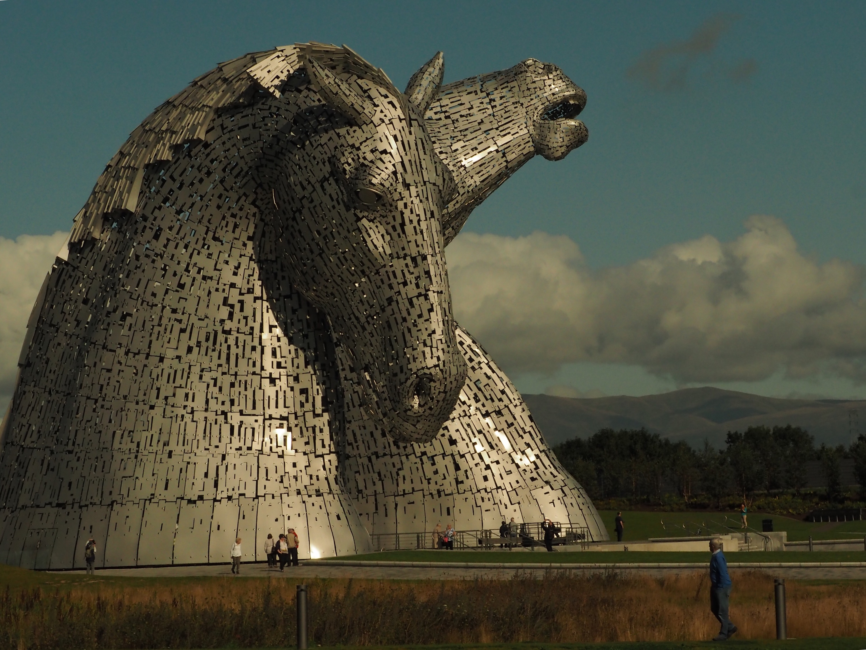 They are amazing: 30 metres high (a distraction as you drive along the motorway!), built of steel. The story is that they represent the horse’s role in agriculture and industry in Scotland, and the kelpies name reflects mythical transforming beasts with the strength and endurance of 10 horses. They are placed in a new park next to the Forth and Clyde Canal. So new the visitors centre is still being finished.