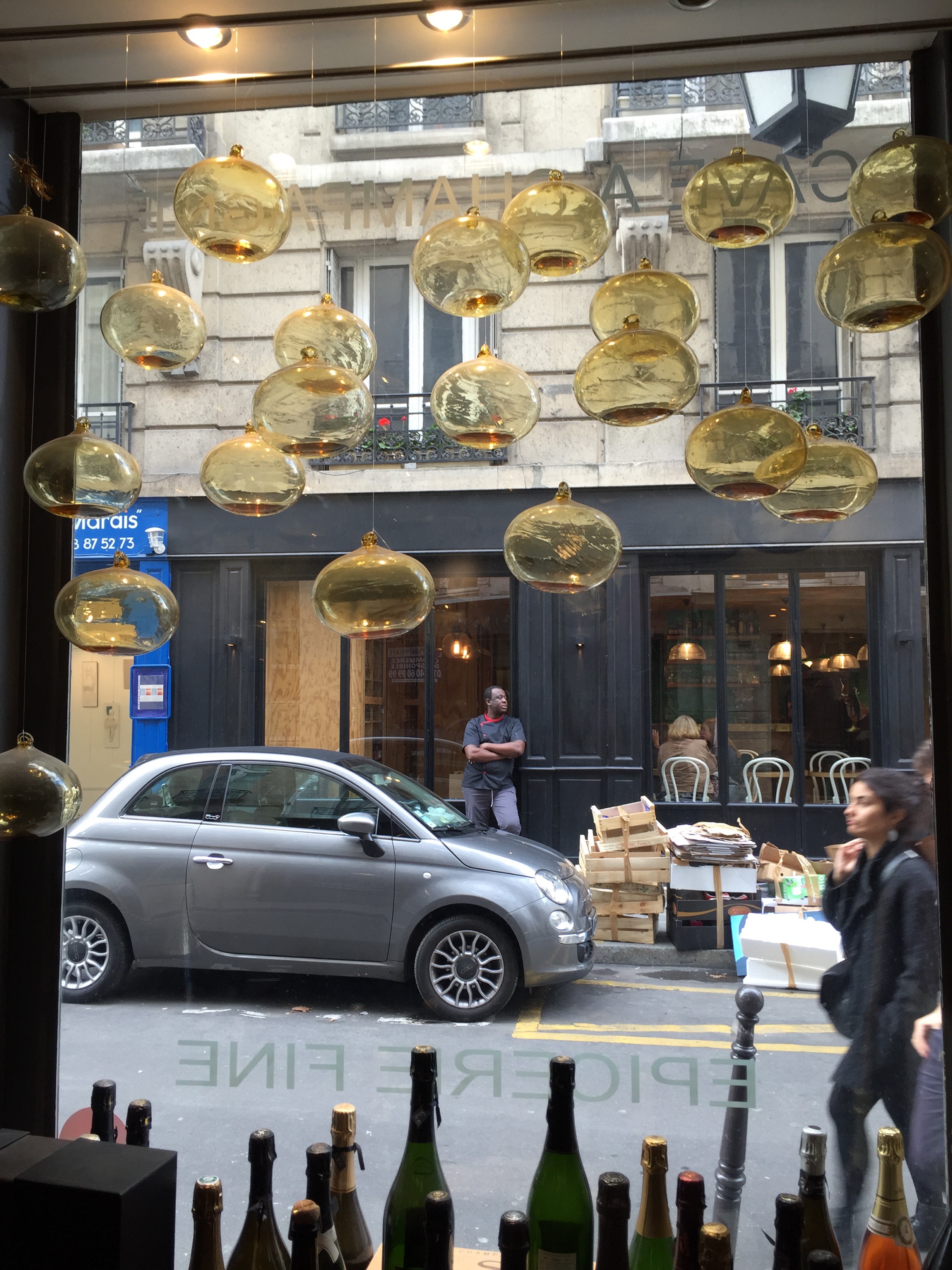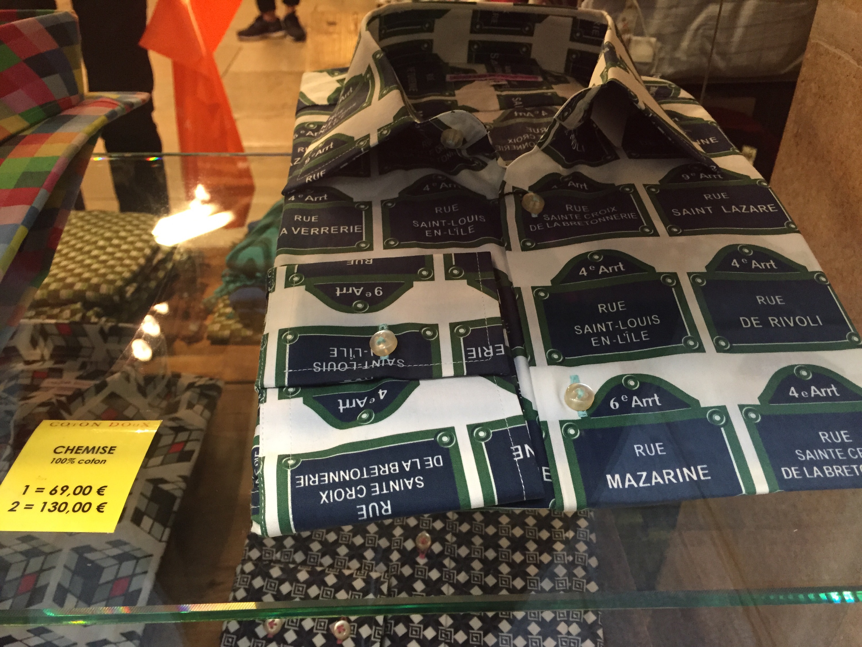 So below is the street view as we drank our champagne, and some random shop windows and street art (and yes, that is a shirt with a Paris street sign print!).