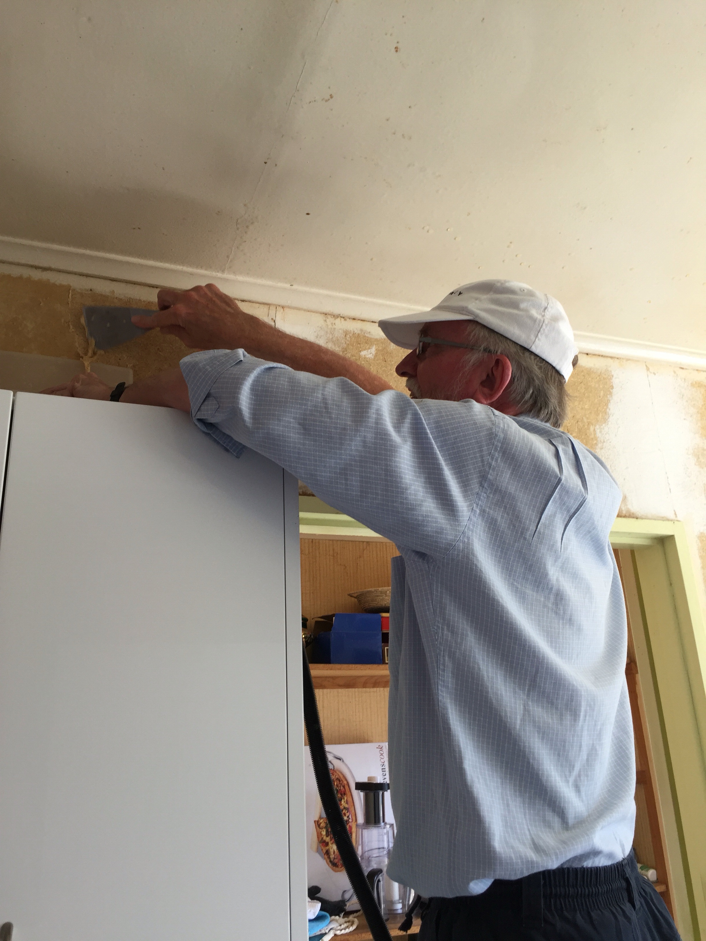 We are trying to get a few things done around Mum and Dad’s.  We are willing but unskilled labour.  So I’ve been wageing  war against weeds in the garden and John has been helping Dad strip wallpaper to get the kitchen painting done.