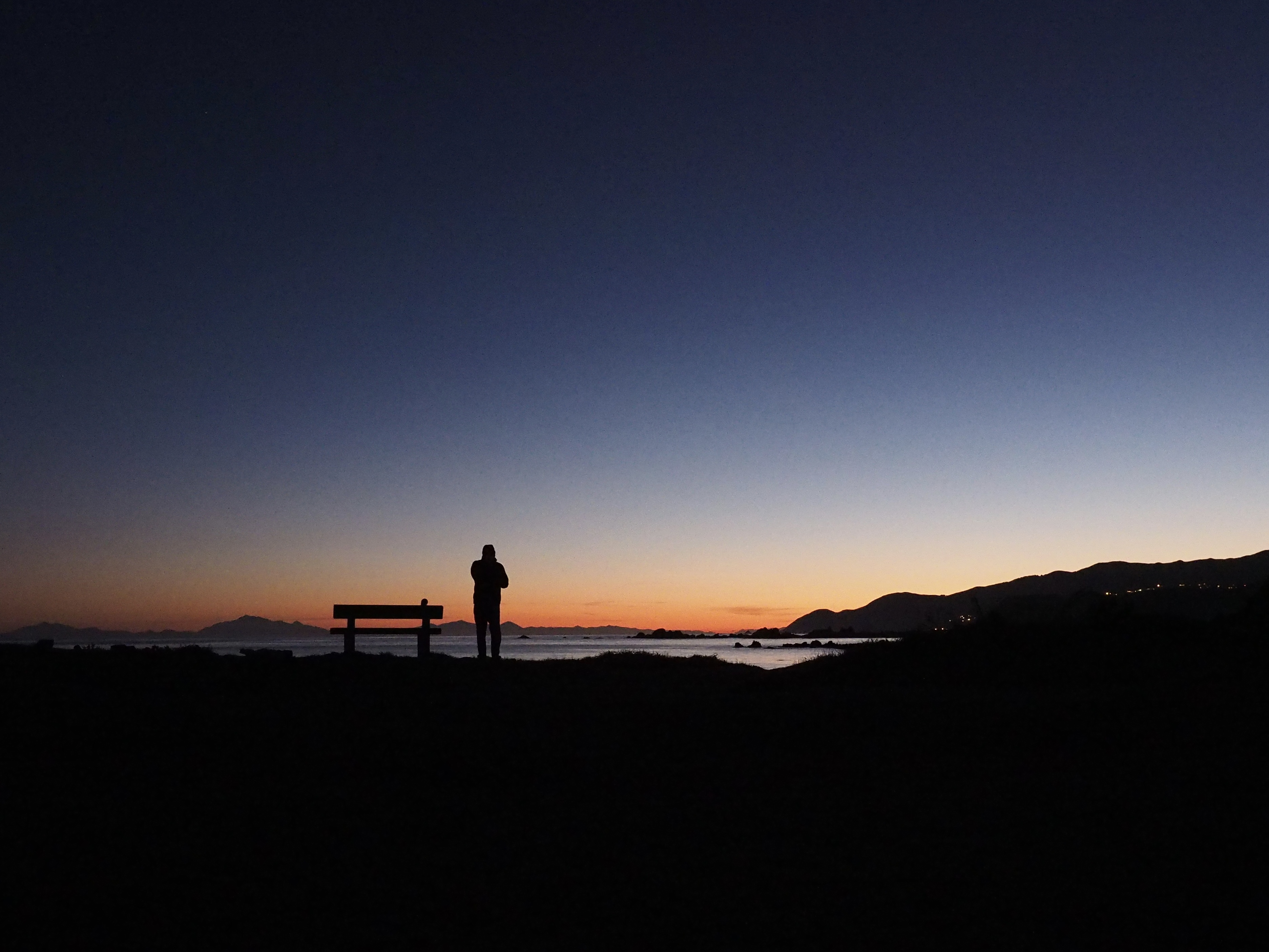Waiting for the dark…Moonset, the next morning, over the south coastLook closely – stars!My favourite pohutakawa trees – Scorching BayShadow selfie!