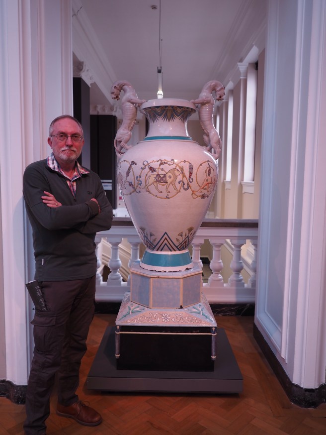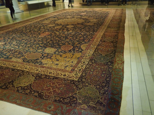 On a London day that started grey and threatened and did become wet, we visited the V&A, literally down the stree and around the corner. I first visited here over twenty years ago, and as I’ve become more interested in arts and crafts, islamic and asian art and textiles, I’ve become even more interested in coming back.