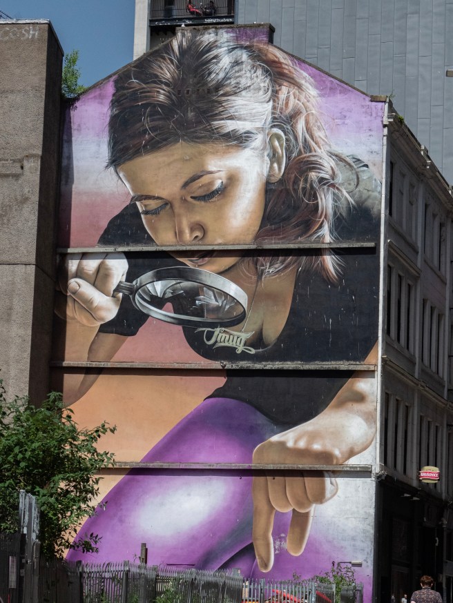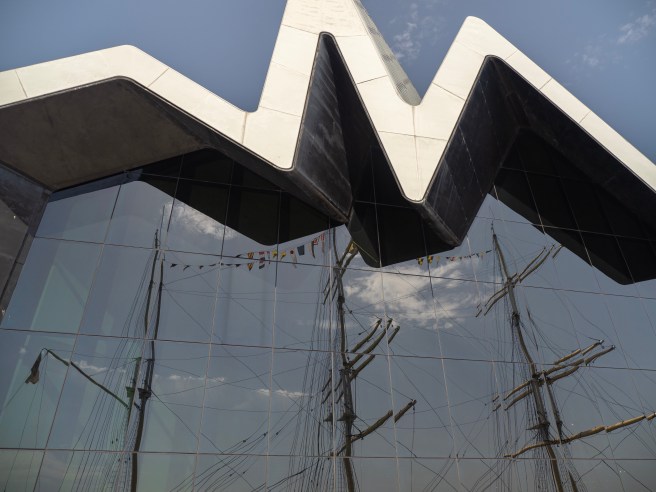 From the top of The LighthouseVictorian and modern…Looking down the spiral in the Lighthouse towerOn of the murals on Glasgow’s mural trail that we stumbled acrossThe SV Glenlee at the Riverside museumThe distinctive roofline of the museum